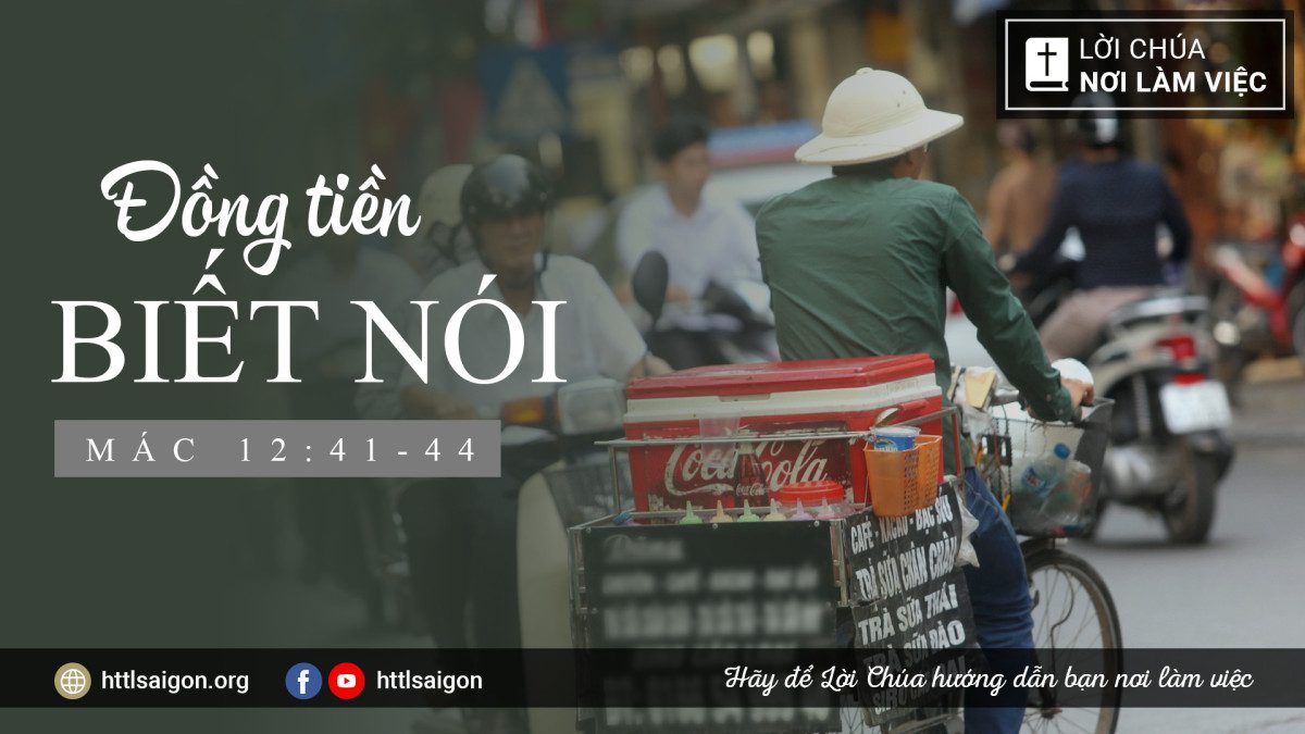 “Đức Chúa Jêsus ngồi đối ngang cái rương đựng tiền dâng, coi dân chúng bỏ tiền vào thể nào. Có lắm người giàu bỏ nhiều tiền; cũng có một mụ góa nghèo kia đến bỏ hai đồng tiền ăn một phần tư xu. Ngài bèn kêu môn đồ mà phán rằng: Quả thật, ta nói cùng các ngươi, mụ góa nghèo nầy đã bỏ tiền vào rương nhiều hơn hết thảy những người đã bỏ vào. Vì mọi kẻ khác lấy của dư mình bỏ vào, còn mụ nầy nghèo cực lắm, đã bỏ hết của mình có, là hết của có để nuôi mình.” (BTT)
