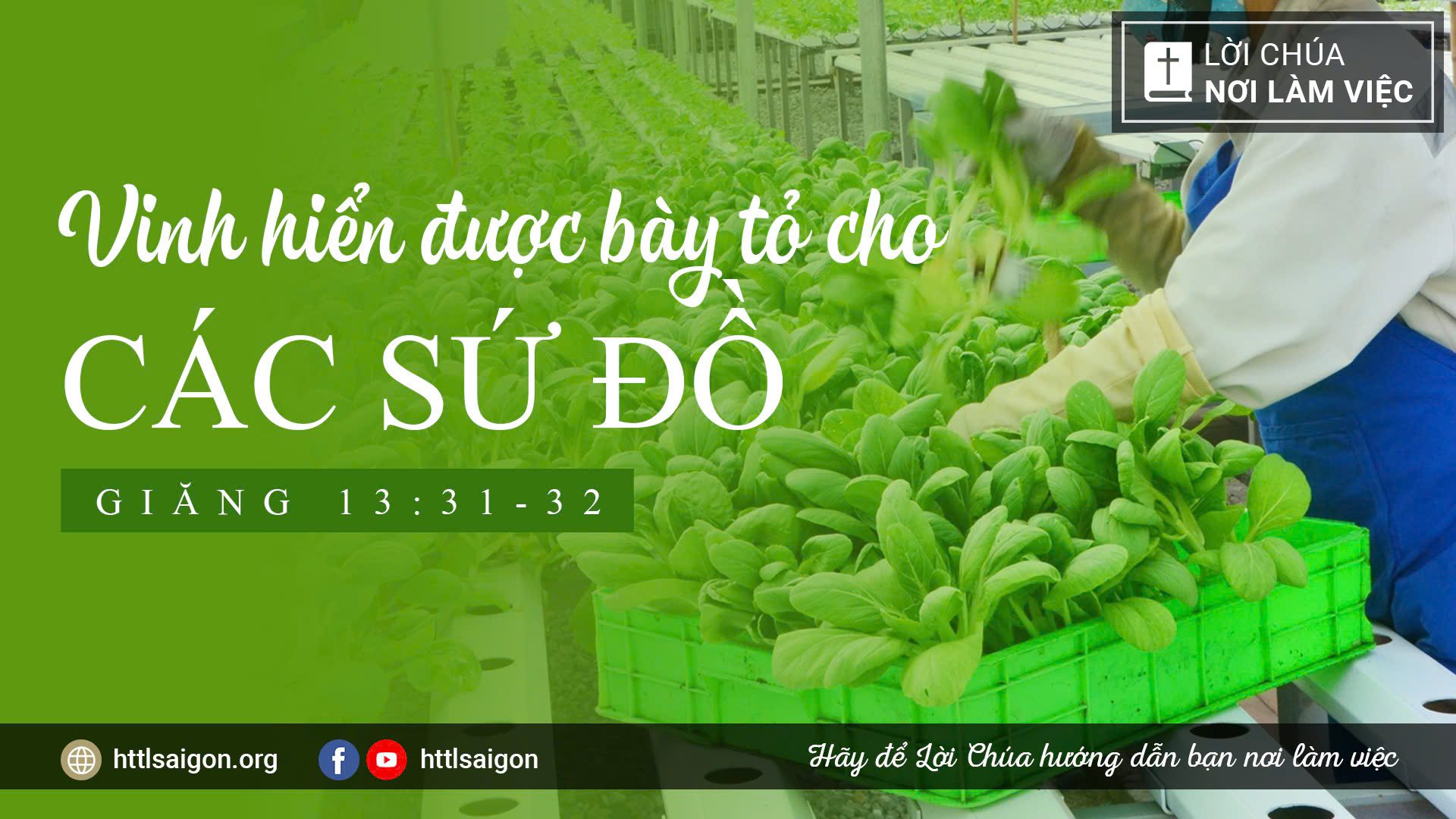 “Khi Giu-đa đã ra rồi, Đức Chúa Jêsus phán rằng: Hiện bây giờ Con người được vinh hiển, và Đức Chúa Trời được vinh hiển nơi Con người. Đức Chúa Trời cũng sẽ làm cho Con người vinh hiển nơi chính mình Ngài, và Ngài sẽ kíp làm cho vinh hiển.” (BTT)